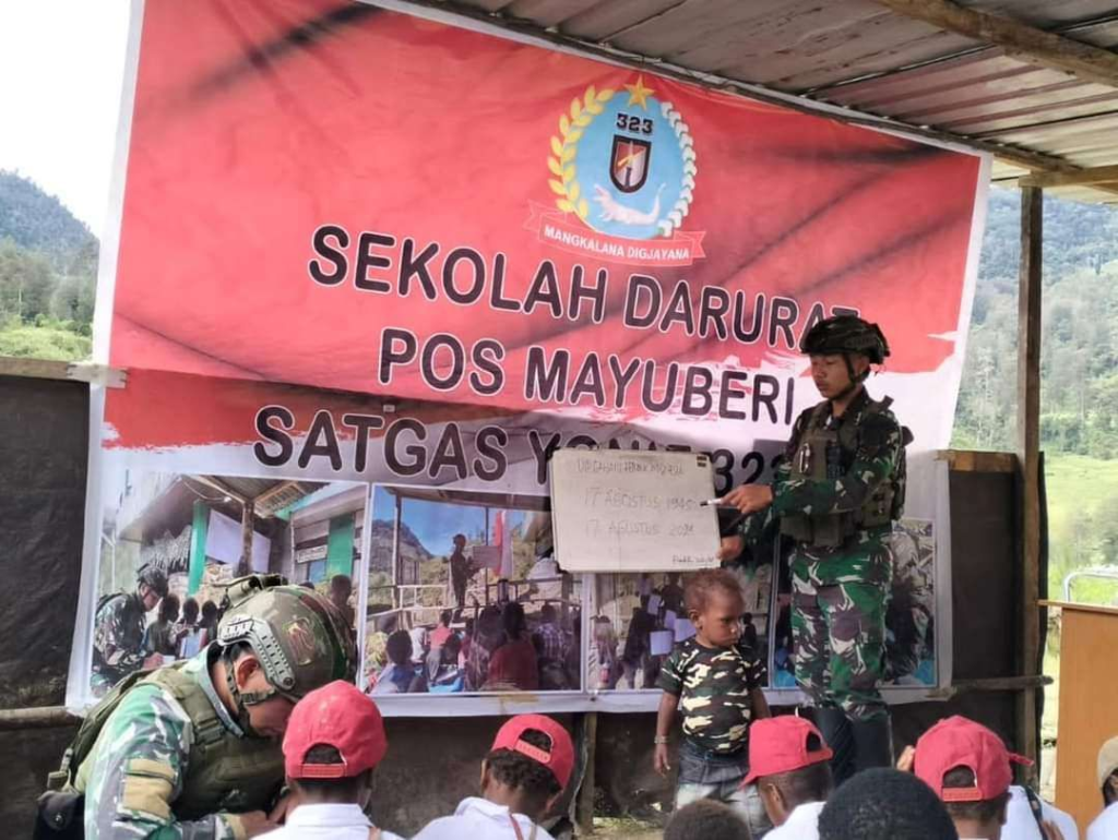 The Army’s 323rd Infantry Battalion’s Mobile Task Force “Buaya Putih” (White Crocodile) stationed at Mayuberi Post is continuing to devote itself to the children of rural Papua by holding teaching and learning activities in emergency schools. This took place in North Ilaga District, Puncak Regency, Central Papua, on Wednesday (31/07/2024).