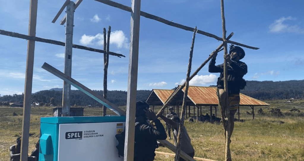 Commander of the Yonif 751/VJS Task Force Lieutenant Colonel Inf Erwan Harliantoro, SH, M.Han explained that the lighting was presented in the form of an electric power distribution device (APDAL) and an electric energy charging station (SPEL). These two tools, said Erwan, are expected to help the community in carrying out their day-to-day activities, especially at night.